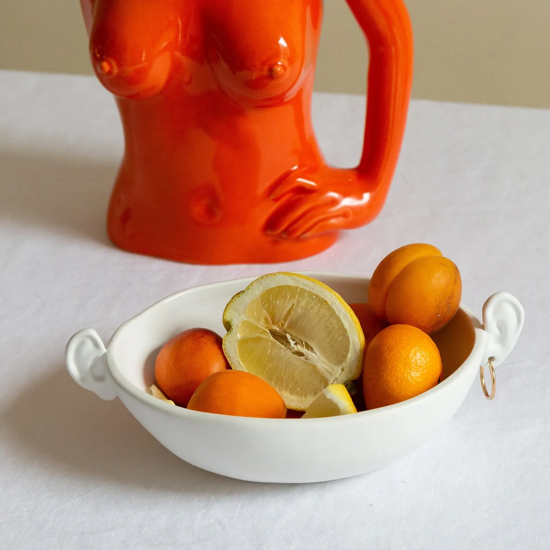 Why Does Something Functional Have To Be Boring? A Great Centerpiece For Fruit, This Fun Mini Ear Bowl Is Made From White Ceramic Coated With A Glaze On The Inside. Look Closely At The Ear-Shaped Handles, And You’Ll See One Is Pierced, Meaning You Can Customise It With One Of Your Earrings.